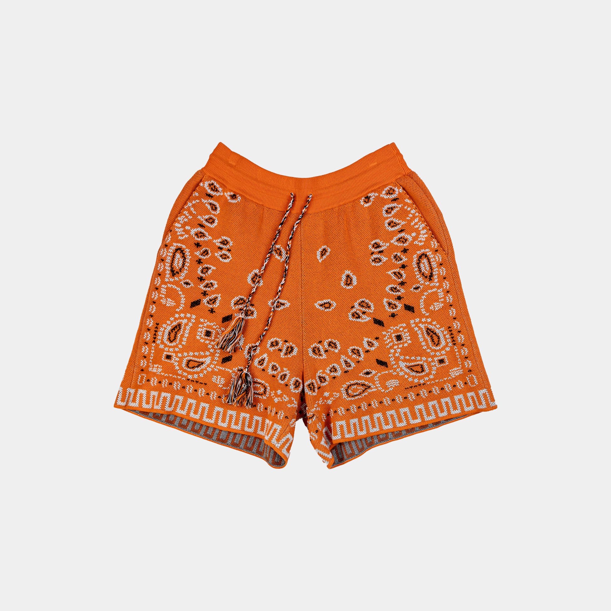The Alanui Cotton Piquet Bandana Shorts are made from 100% cotton piquet fabric. They feature an all-over bandana print and an elasticated waistband with a drawstring.