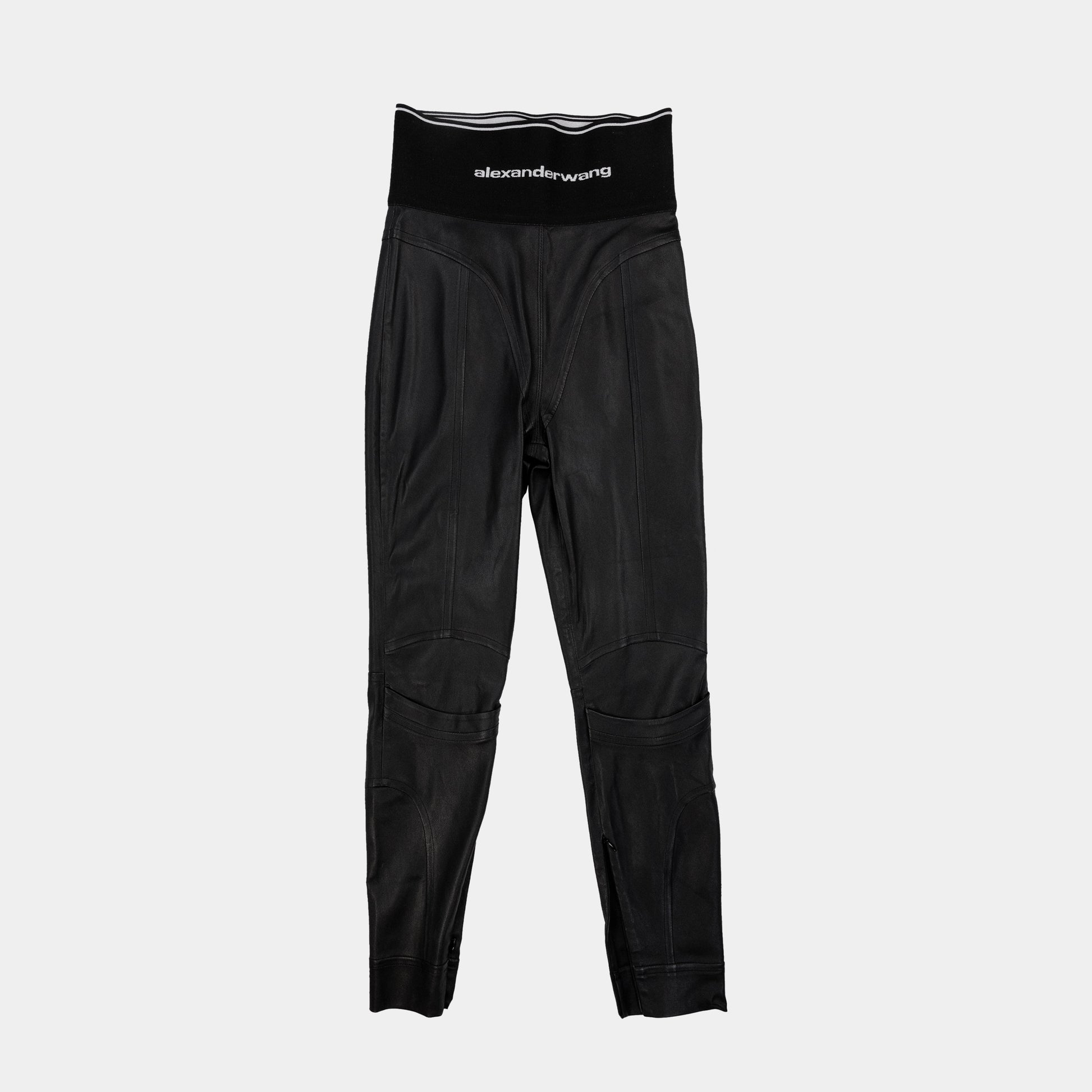 Alexander Wang High Waist Logo Leather Pants. Skinny-fit stretch wool twill leggings in black