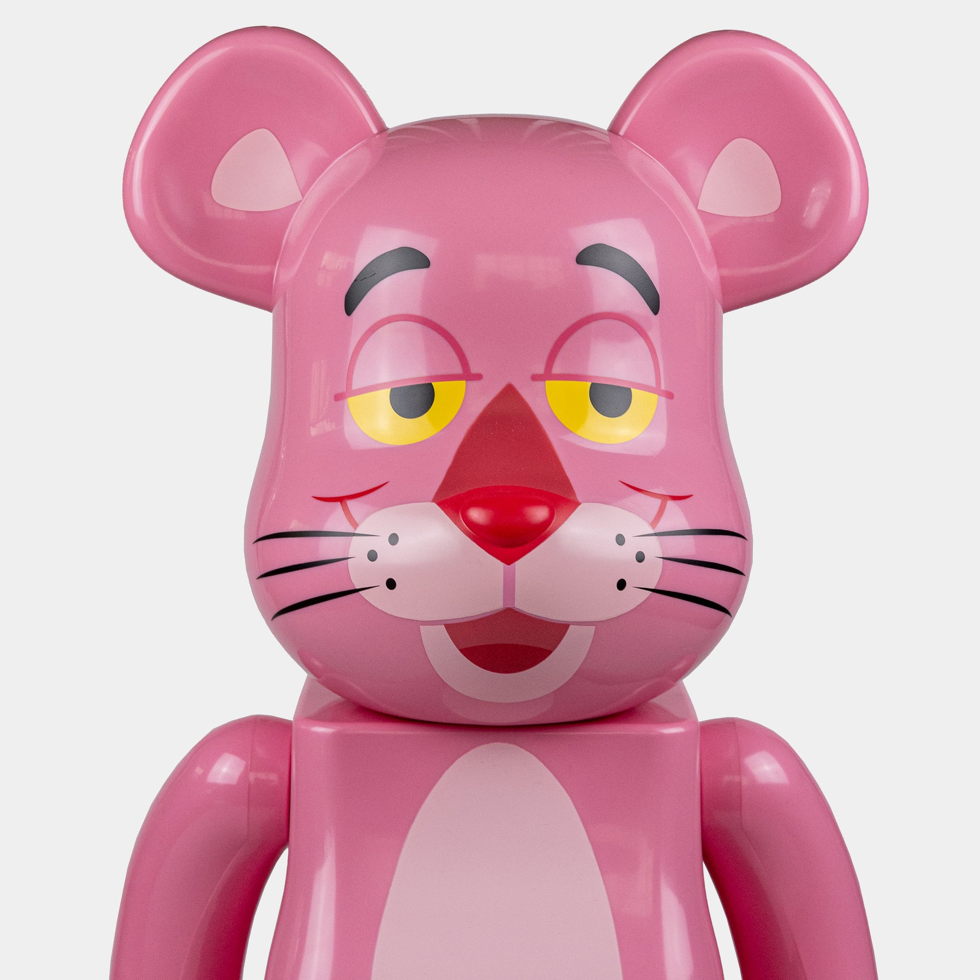 The highly sought-after Bearbrick x Pink Panther 1000% collectible figure — a striking collaboration between legendary toymaker Medicom Toy and the beloved cartoon icon. This oversized figure captures the essence and charm of the Pink Panther, complete with its signature pink hue and sly smile. Expertly crafted from high-quality vinyl.