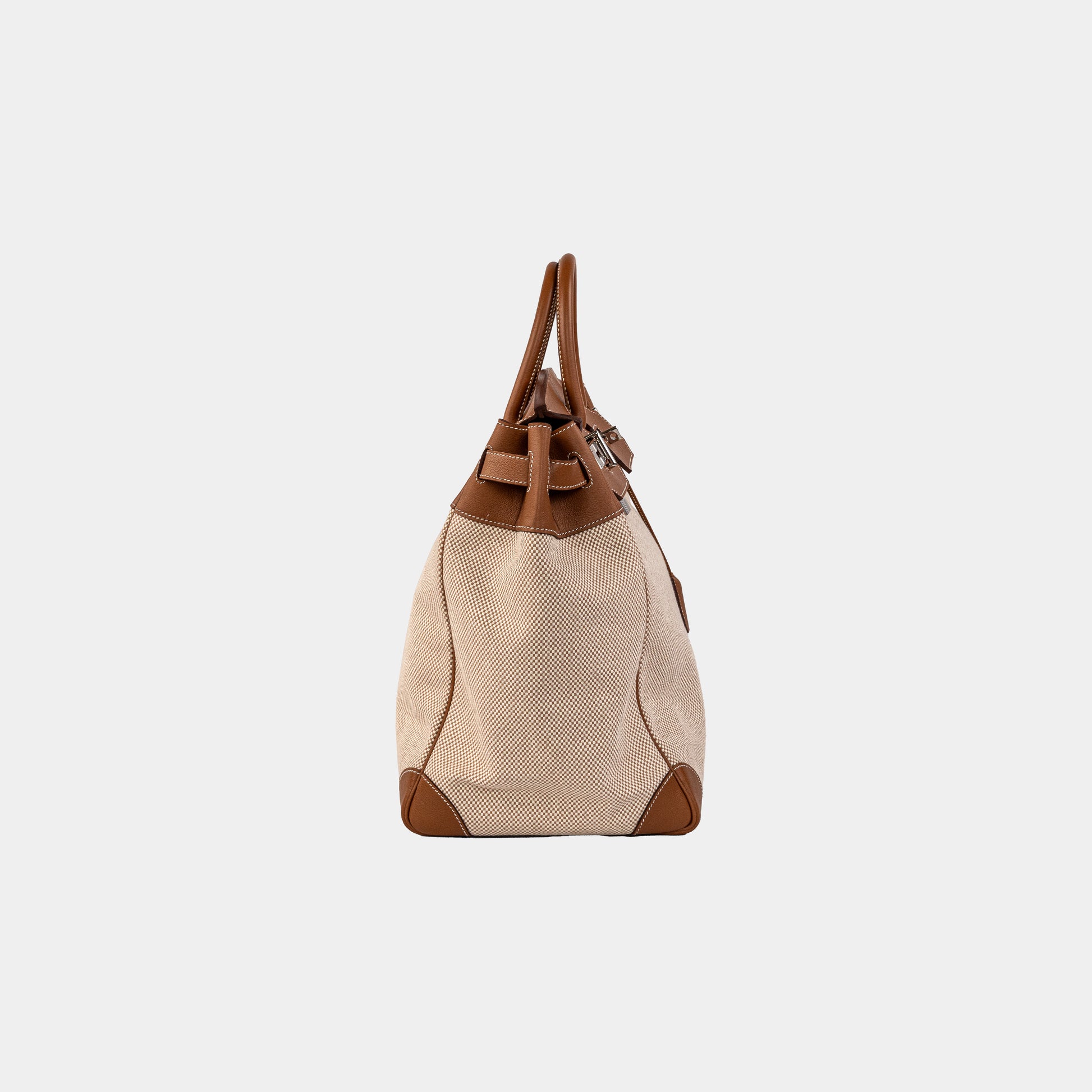 A sophisticated blend of textures — Evercolor leather is durable, scratch-resistant, and vibrant, while the toile adds a refined, tactile contrast. Crafted in France and part of the coveted “Collection U,” this piece features palladium-plated hardware for a sleek metallic finish that resists tarnishing .