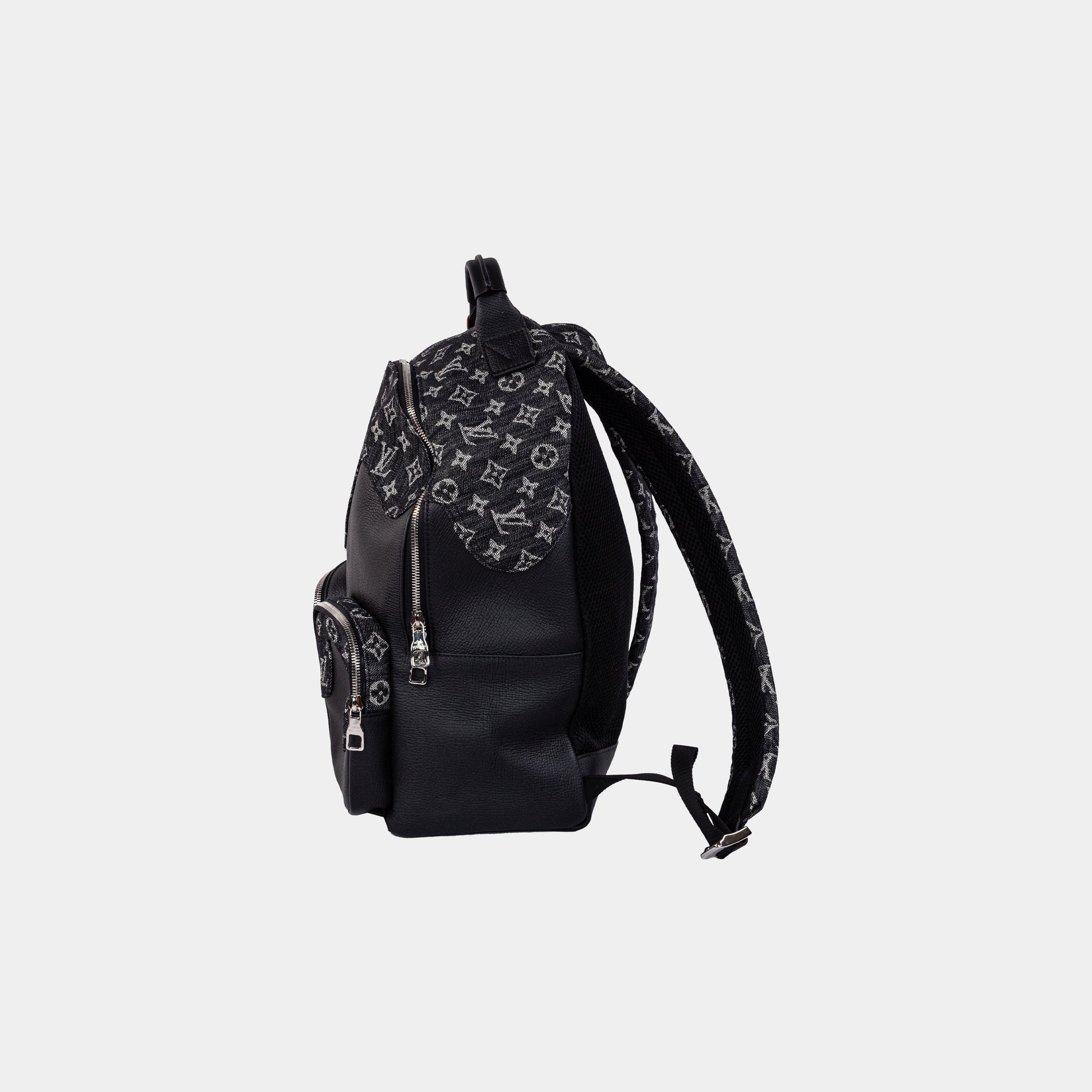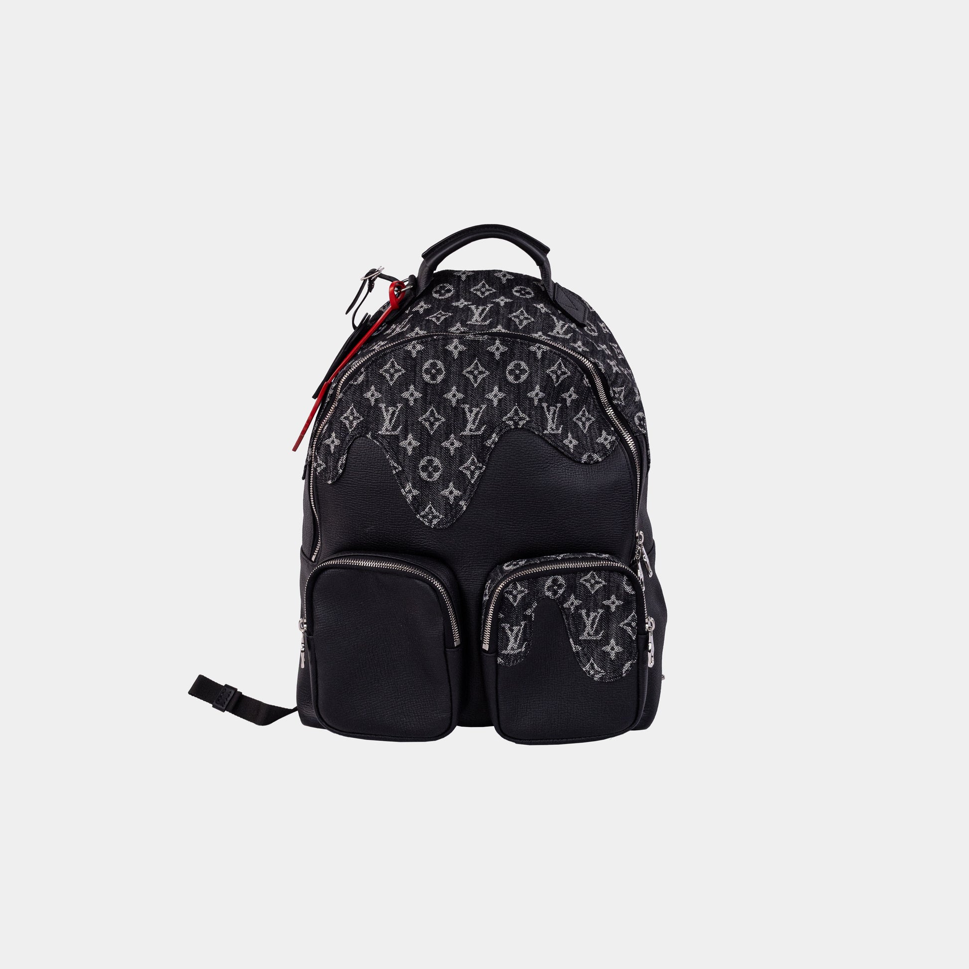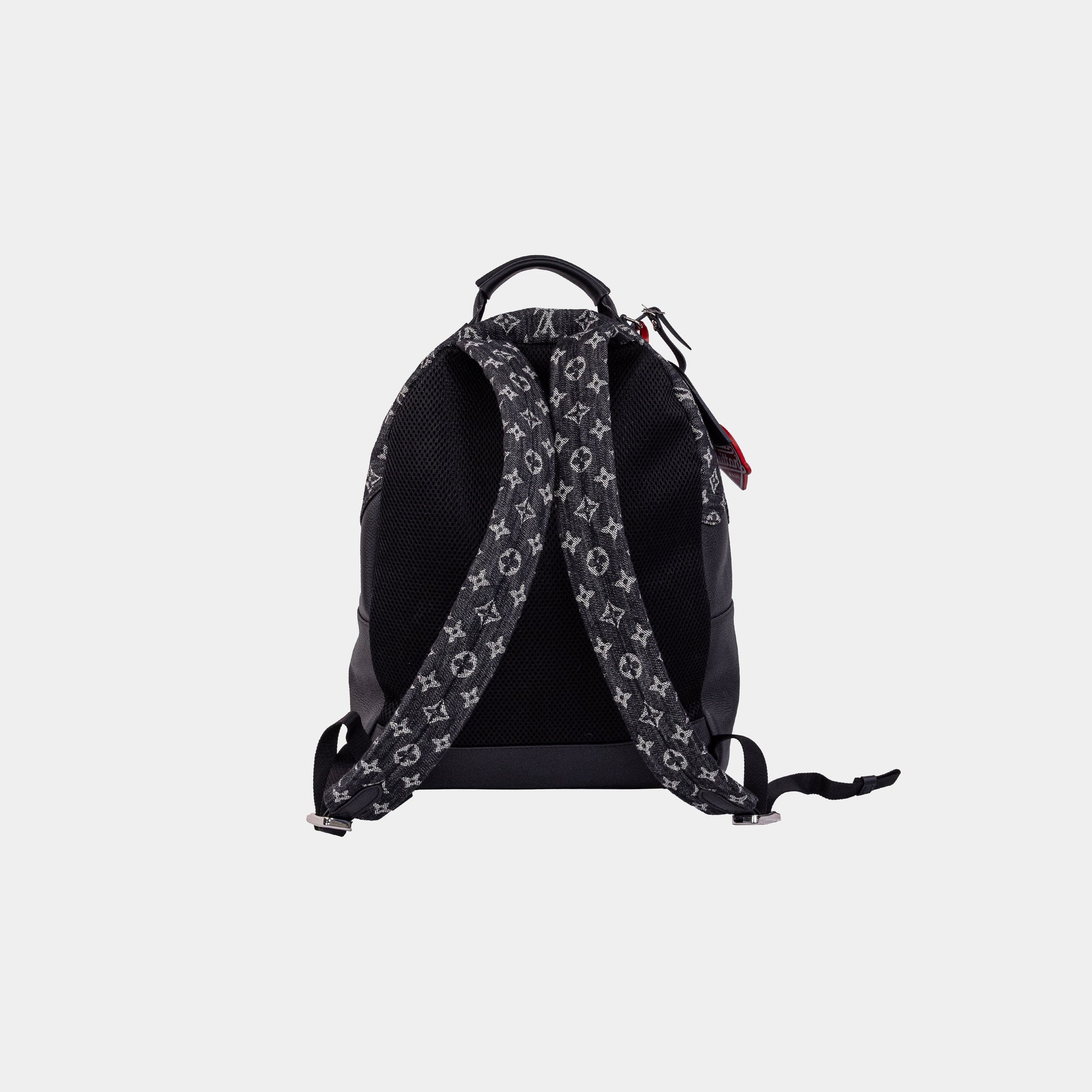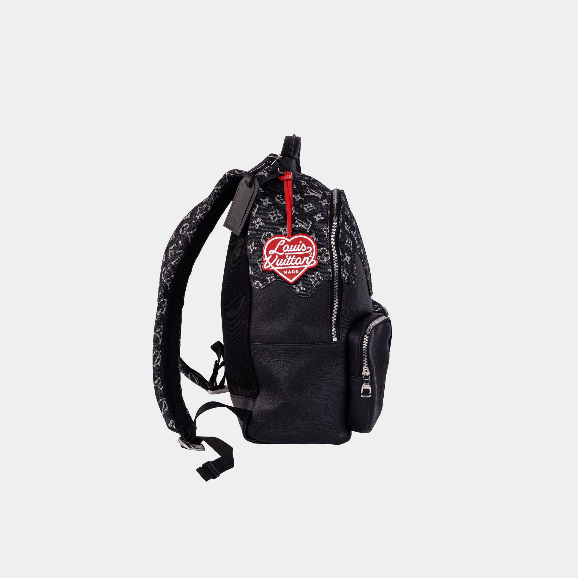 The Louis Vuitton x Nigo Multipocket Monogram Backpack in black is a fusion of luxury craftsmanship and streetwear aesthetics. Crafted from black denim adorned with the iconic Louis Vuitton monogram, it features multiple pockets for practicality and a bold design that reflects Nigo's unique style. Silver-tone hardware and a red heart-shaped tag add distinctive touches to this limited-edition piece.