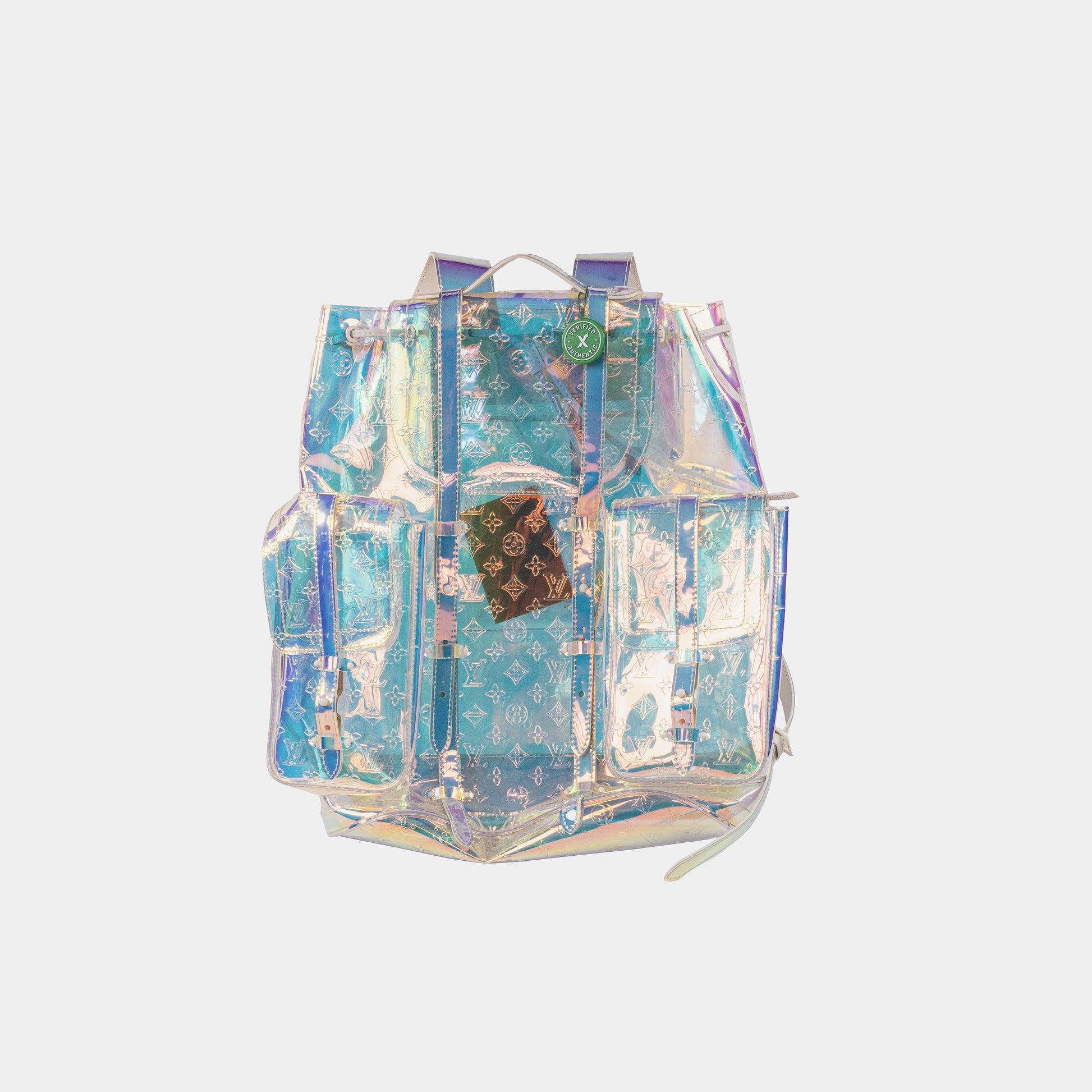 From the mind of Virgil Abloh and Louis Vuitton comes this large reflective prism backpack covered in the LV monogram.